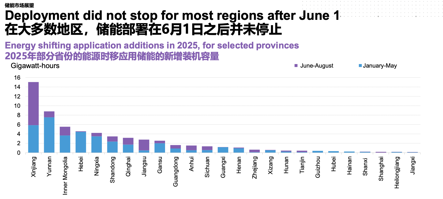 該機(jī)構(gòu)列出的表格中可以看到,在6-8月,新疆、江蘇、內(nèi)蒙古、青海等省份仍有較大的新增儲(chǔ)能裝機(jī)容量。
